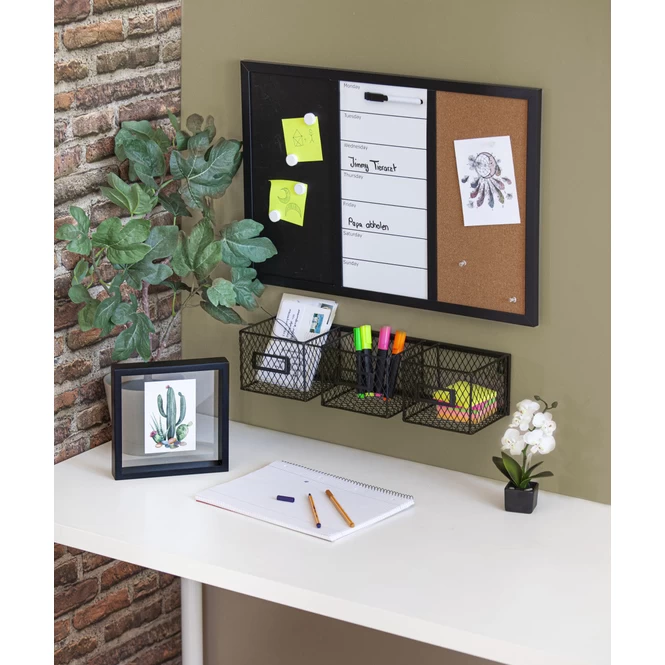 Ordnungsfans aufgepasst! Mit der stylischen Aufbewahrungskörben kommt ihr fortan voll auf eure Kosten! Diese sind viel mehr als eine moderne Gelegenheit, um Briefe, Stifte oder sonstige Büroutensilien sicher zu verwahren, sondern aufgrund ihrer liebevollen Gestaltung sind sie auch ein echter Hingucker. Sie kommen zu dritt in miteinander verbundener Form daher und fügen sich mithilfe ihres neutralen Schwarz nahtlos in jeden Raum ein. Das Element besteht aus Metall, misst ca. 48 x 12,5 x 10,5 cm und ist genau das Richtige für Arbeitszimmer, Hausflur und Co. Ganz gleich, ob für Schule oder Job – die tollen Metallkörbe lassen sich vollkommen nach Belieben in Szene setzen. Also schnappt sie euch und ordnet munter drauflos!