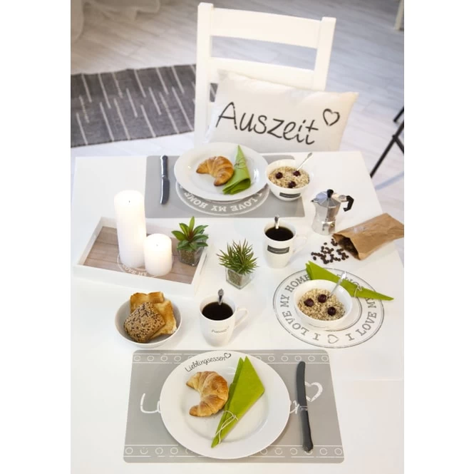 Trendsetter, aufgepasst! Wenn ihr es mögt, eure heimischen vier Wände mithilfe hübscher Dekoration in eine paradiesische Wohlfühloase zu verwandeln, darf euch dieses Stück keineswegs fehlen! Das niedliche Kissen erfüllt nämlich gleich zwei Wünsche auf einmal: Zum einen eignet es sich hervorragend für entspannende Momente auf dem Sofa, dem Sessel oder dem Bett. Zum anderen verfügt es über eine hinreißende Aufschrift, mit welcher es euch das Entspannen noch süßer macht. Es besteht aus mit Polyester gefüllter Baumwolle, verfügt über die Maße 30 x 50 cm und ist in zwei trendigen Farben erhältlich. Ganz gleich, ob in stylischem Grau oder neutralem Weiß – das tolle Dekokissen ist das optimale Zubehör, das euch die Abende fortan noch heimeliger macht.