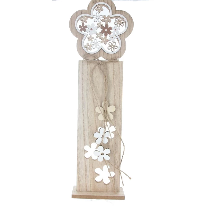 Standdeko – Blumen – braun/weiß – aus Holz – ca. 12 x 5 x 37 cm