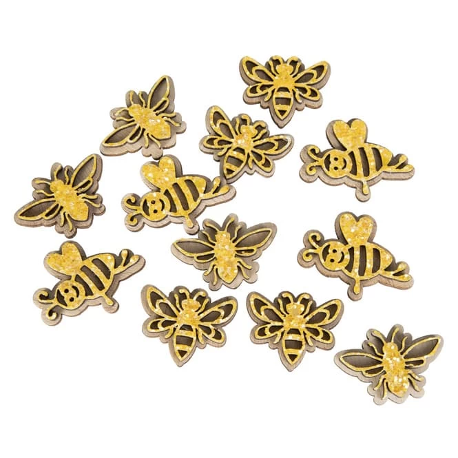 Streudeko – Bienen – Aus Holz – Ca. 3,5 Cm – 12 Stück
