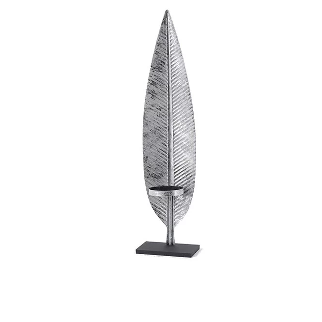Teelichthalter Feder silber – ca. 13,5 x 9,5 x 56 cm