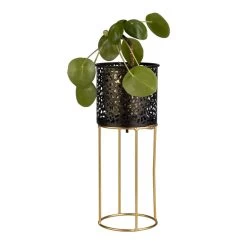 Pflanztopf Mit Ständer – Schwarz/gold – Aus Metall – Ca. 13 X 33 Cm